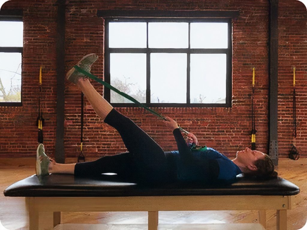 1. Lie on your back and loop a strap or towel around one foot.