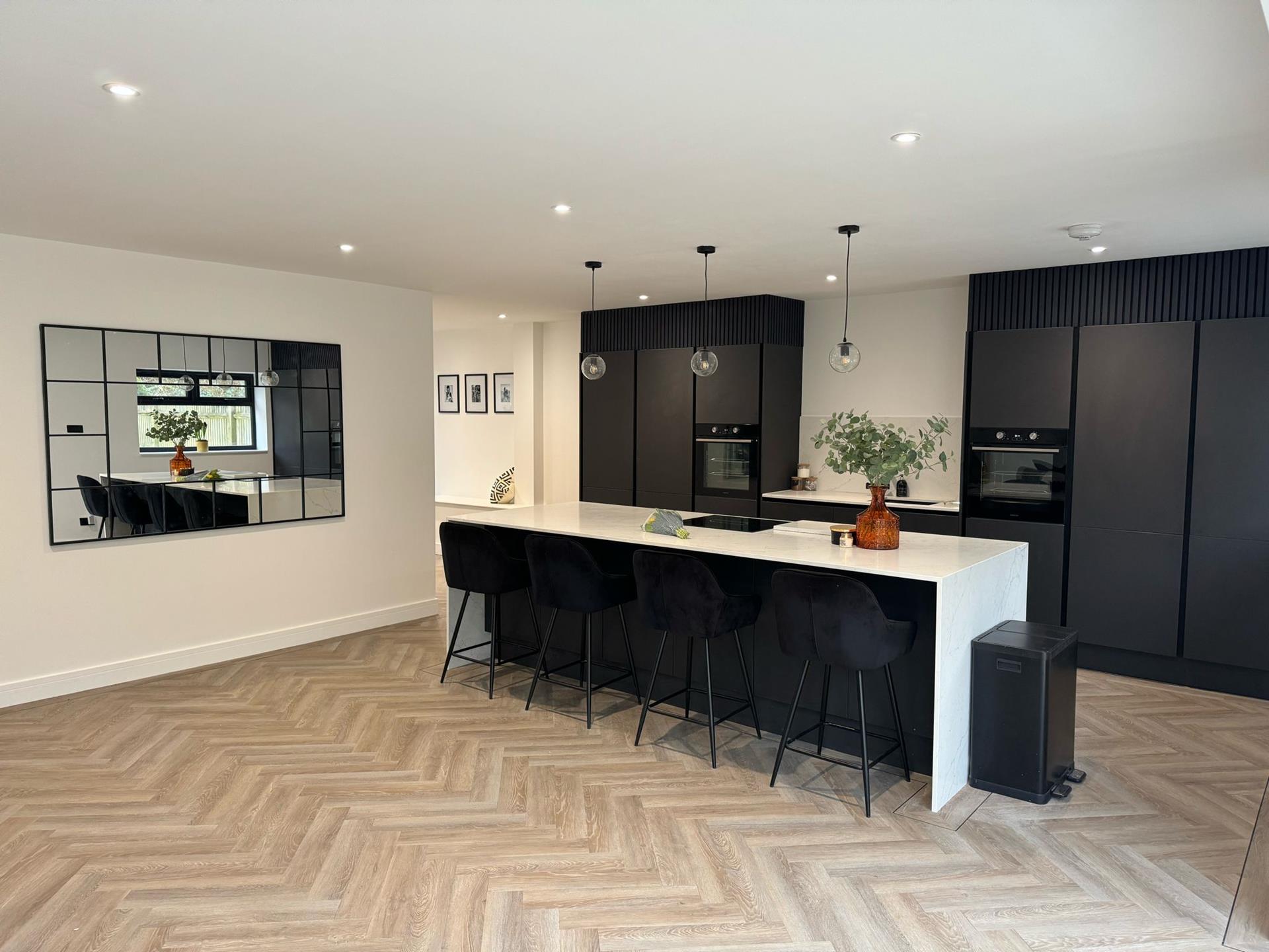 When designing interiors for this loft extension type, think of each part of the “L” as a different zone. Use distinct wall colours or flooring to define the areas while keeping the overall design cohesive. These extensions offer excellent headroom and large window options, allowing for bolder design elements like statement wallpaper or oversized art.