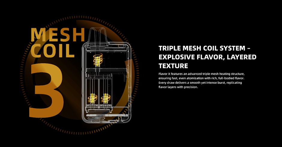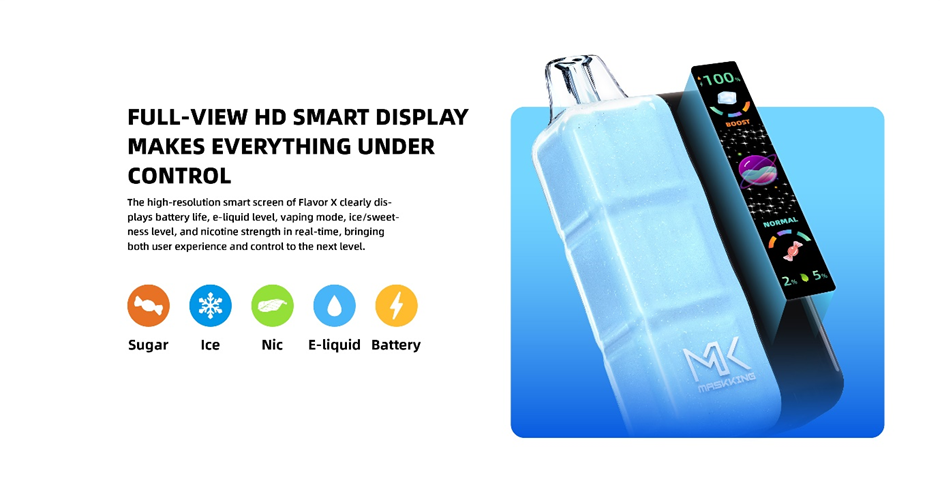 Innovation drives the Maskking Flavor X. Its Triple Tank Control lets you adjust sweetness, nicotine, and ice levels independently, while Triple Mesh Coil technology guarantees richer flavor and denser vapor with every puff.